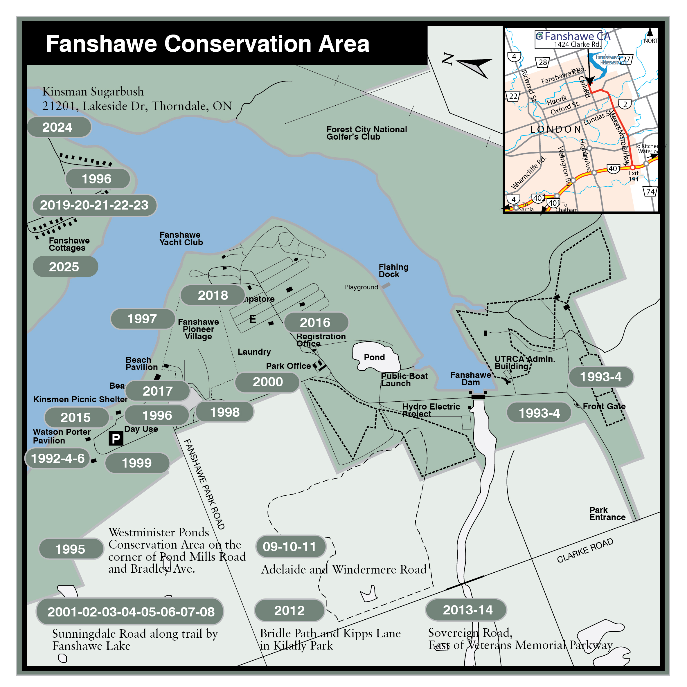 Established during London's Arbor Week, April 24, 1992, the initial plantings took place north of Watson Porter Pavilion in Fanshawe Park. A dedication service is held annually at the Pavilion each September recognizing those being honoured that year. See highlights of our 2024 service here.