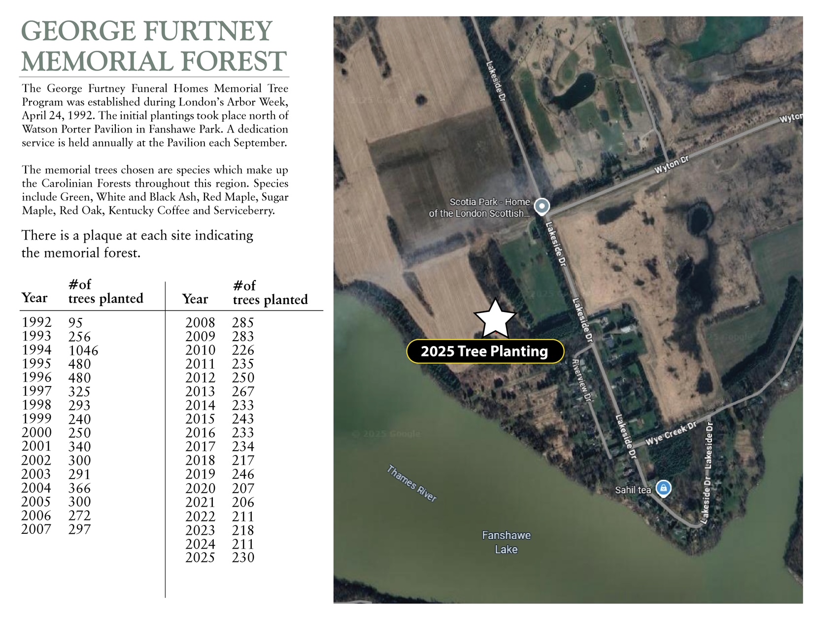 The George Furtney Memorial Forest program was created in London as a lasting way to honour the memory of our loved ones. The 'Forest' is a living memorial that also contributes to our community and our environment, and will for generations to come.